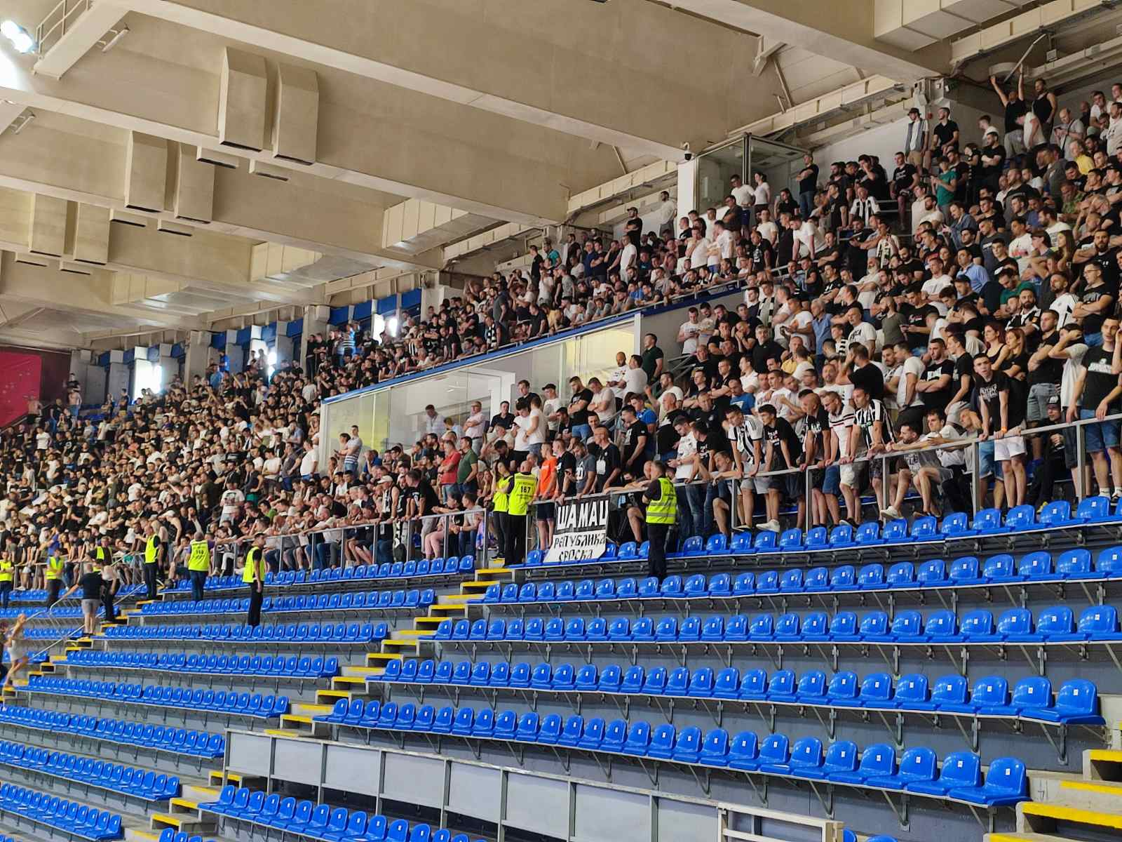 To znači da će osim meča koji je na programu ovog petka od 18.30, crno-beli morati da igraju još dve utakmice u sledećoj sezoni bez podrške punih tribina. Kazna se odnosi na deset redova tribine „A“, prvih 13 redova tribine „Bela loža“, prvih 10 redova tribine „B“, cele tribine „Parter 4“, cele tribine „Parter 4 Senior“, cele tribine „Parter B“, cele tribine „Plava loža“ i prvih 12 redova tribine „VIP loža“.