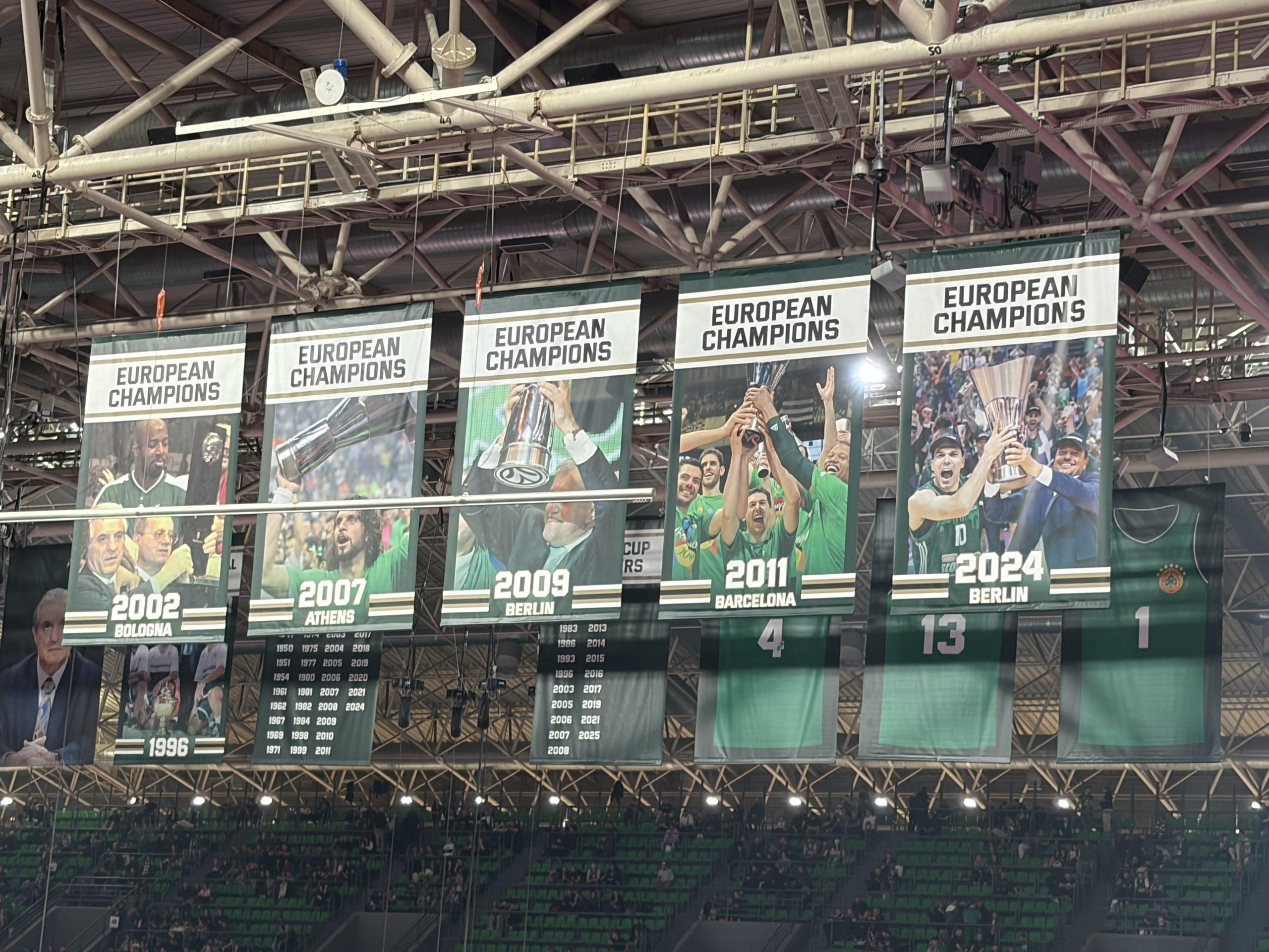 Unutrašnjost arene deluje futuristički. Sve je u znaku Panatinaikosa, a kombinacija zelene i crne boje daje ozbiljan, gotovo monumentalni šmek celom prostoru. Ipak, glavni utisak ostavlja – pod. To više nije običan parket, već gigantski LED ekran koji prati ritam utakmice, menja boje i ispisuje poruke.