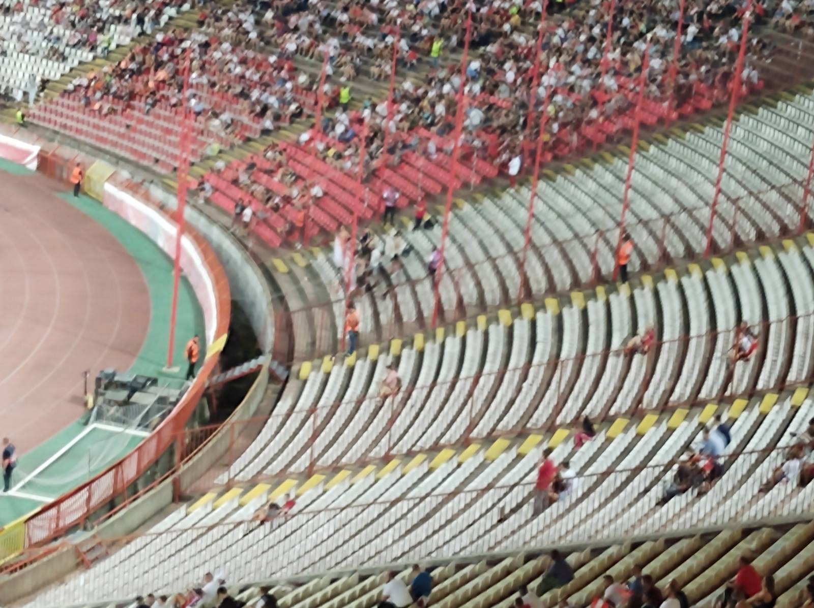 Iznenađenje je svakako bila bakljada „delija“. Nismo na to navikli u Evropi pred utakmicu zbog rigoroznih kazni UEFA. „Delije“ su ipak odlučile da „severna“ tibina bude u dimu i da se u njemu zastave vijore: