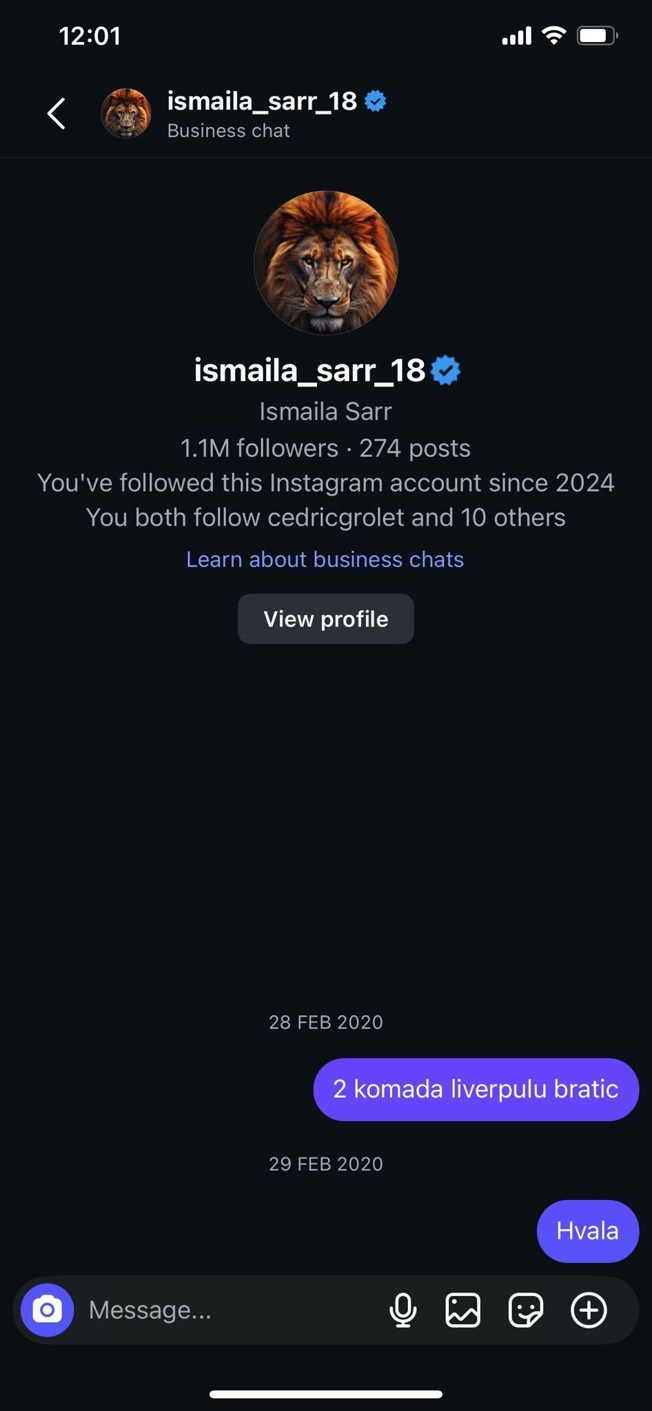 Utakmica je bila u pola sedam u subotu, 0:0 poluvreme, 3:0 kraj. Ismaila dao dva gola i upisao asistenciju. Ja sam mu, normalno, poslao samo „hvala“ na instagramu. Nije mi nikada odgovorio.