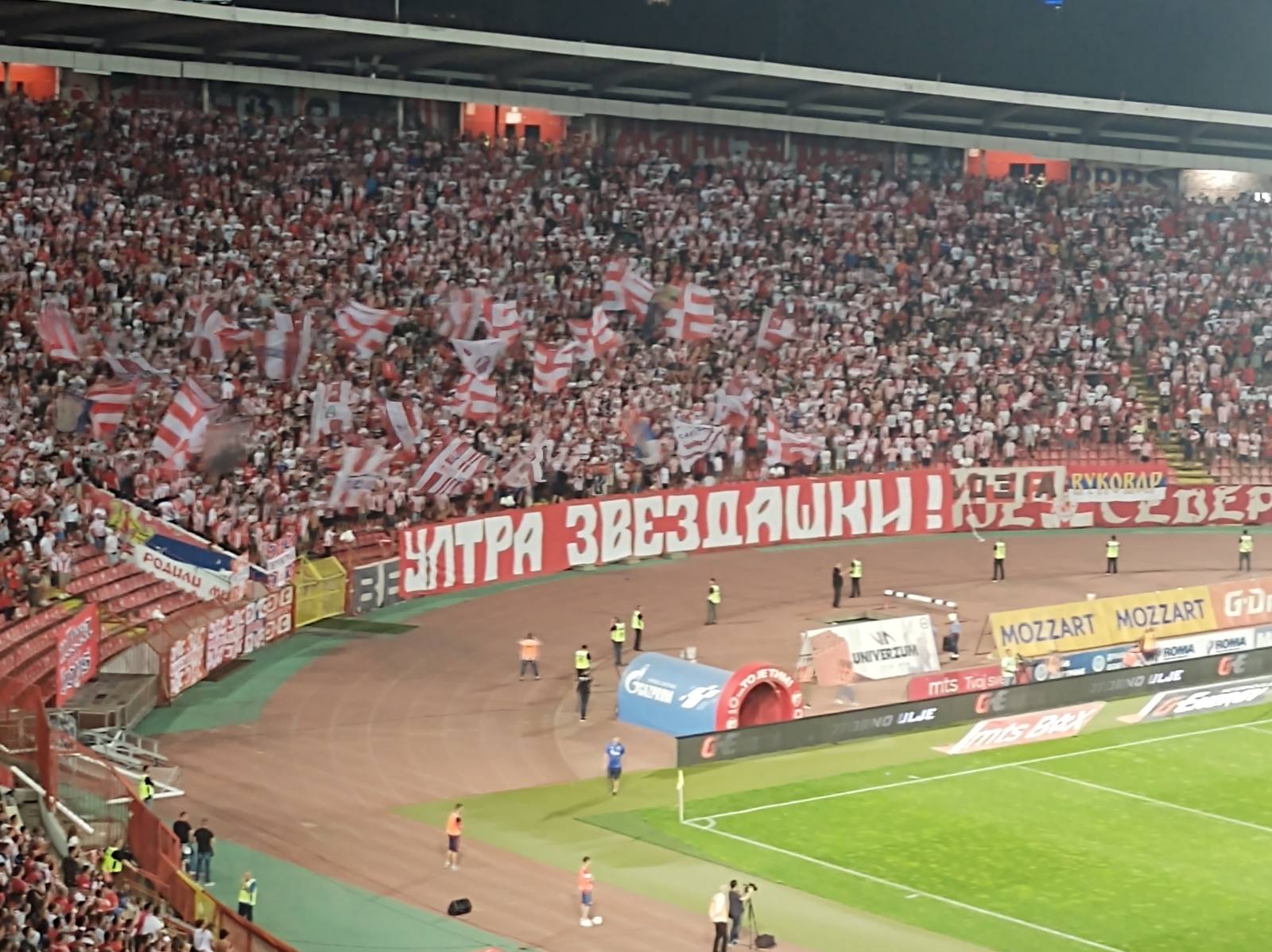 Skoro 40 hiljada navijača Crvene zvezde je 12. igrač Dejana Stankovića. Pesma ne prestaje, mala pauza je usledila samo kada se ukazivala pomoć povređenom golmanu Jurčenku.