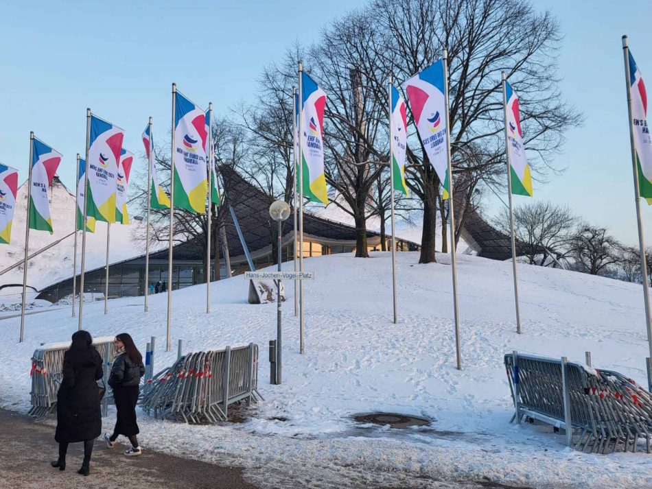 Dakle, rukomet u Minhenu kao da ne postoji. I ovo Evropsko prvenstvo kao da se održava u nekom drugom gradu. Nigde ne možete da vidite baner šampionata, neki transparent ili plakat. Baš ništa i baš nigde. Osim u Olimpijskom parku, odnosno u neposrednoj blizini Olimpijske hale. To je, valjda, logično…