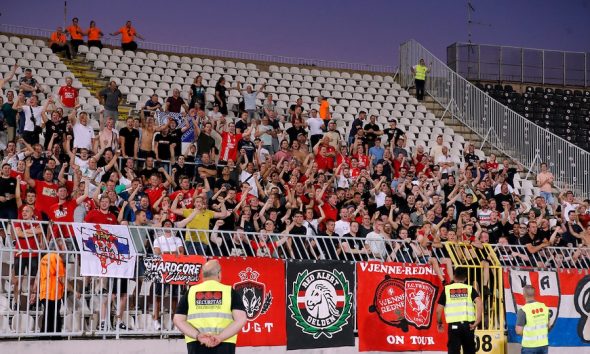 Čukarički i Tvente sastaju se u prvom meču trećeg kola kvalifikacija za Ligu konferencija. Meč se igra na stadionu Partizana, a holandski tim posle prvog poluvremena vodi sa 3:0. Na meču Kristal palas – Arsenal, naša kladionica nudi kvotu 5.70 za igru 2&4+. Na severnoj tribini je oko 150 navijača iz Holandije. Oni su na … Nastavi sa čitanjem NEMA PREDAJE Moćna poruka navijača Tventea tokom meča protiv Čukaričkog (FOTO)