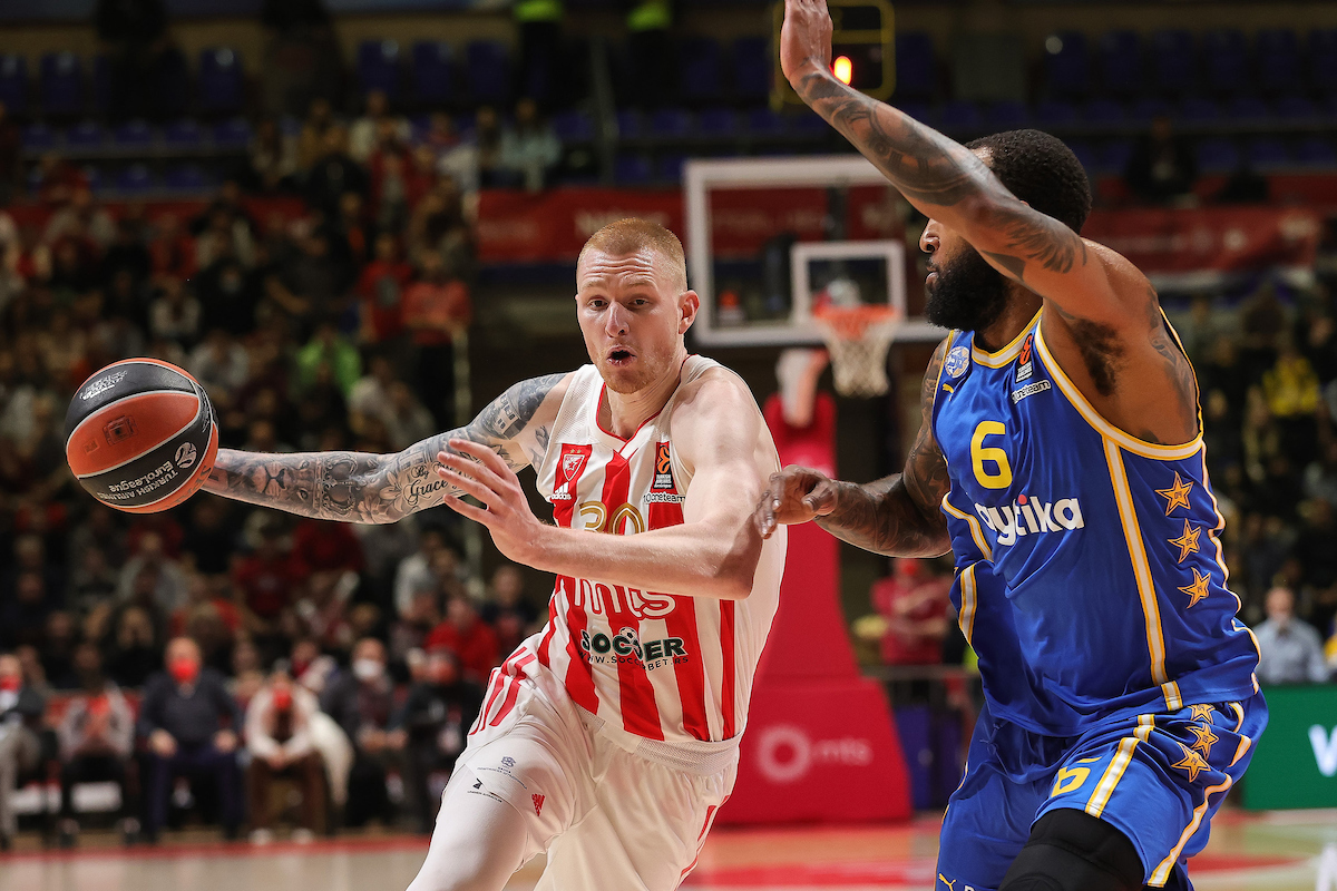 U toku je treća deonica duela između Crvene zvezde i Makabija. Domaći vode četiri minuta pre kraja sa 57:48.