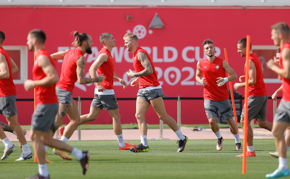 Najvažnije je da je selektor Dragan Stojković imao na raspolaganju kompletan sastav i 26 fudbalera su izašla na teren, po izuzetno toplom i sunčanom vremenu u sportskom centru Al Arabija. Temperatura je bila 32 stepena i jedan od najtoplijih dana od kako su stigli na Mundijal.