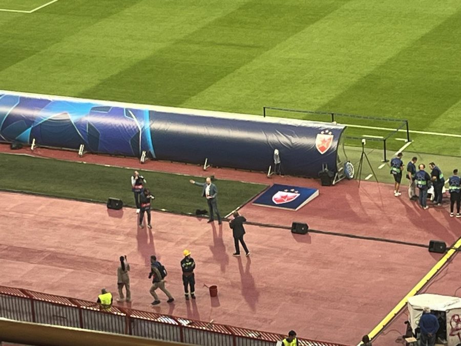 Fudbaleri Crvene zvezde su po tradiciji zagrevanje odradili na svom pomoćnom terenu. Nisu izlazili na glavni teren, što je prošli put iznenadilo norveške novinare.